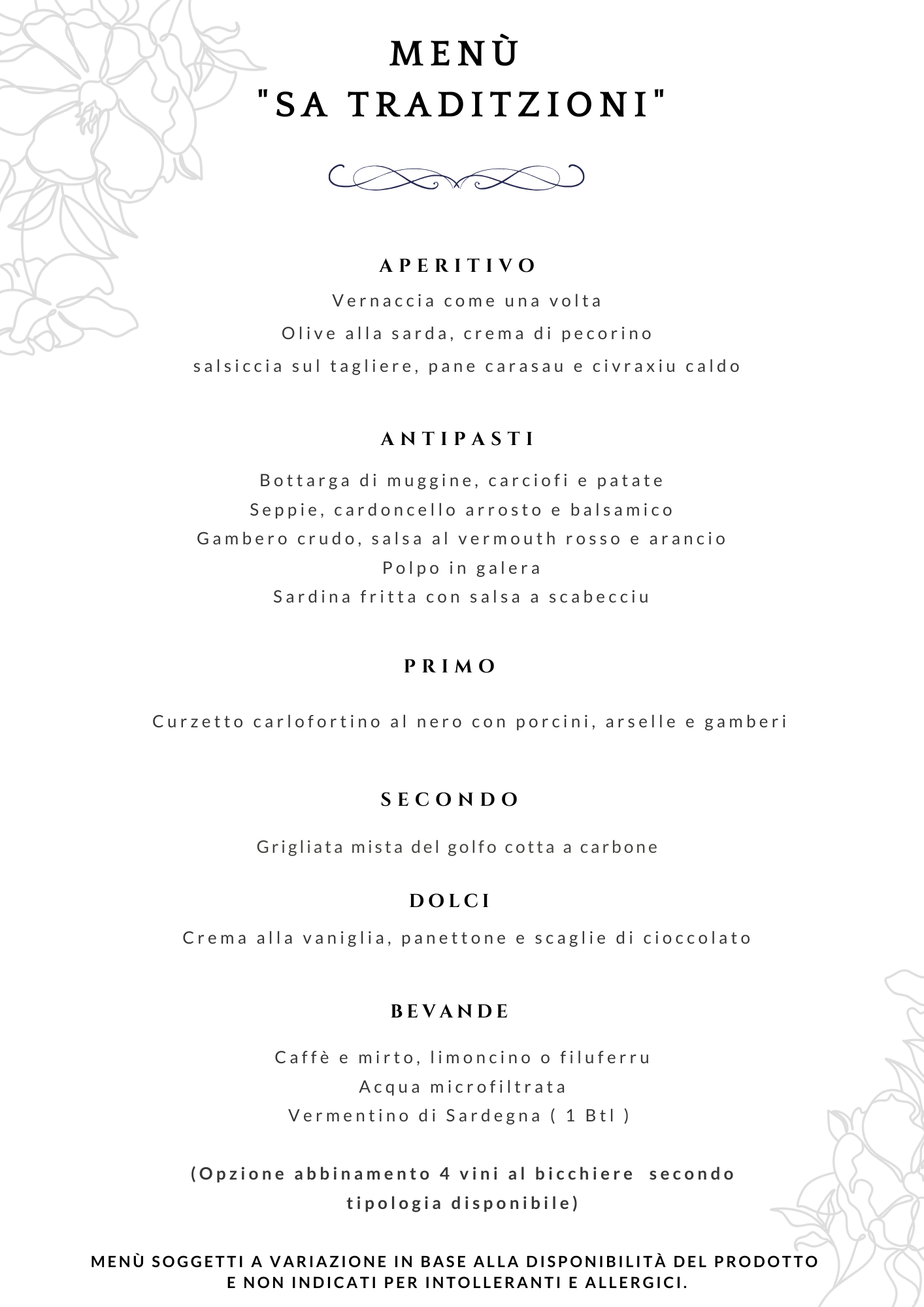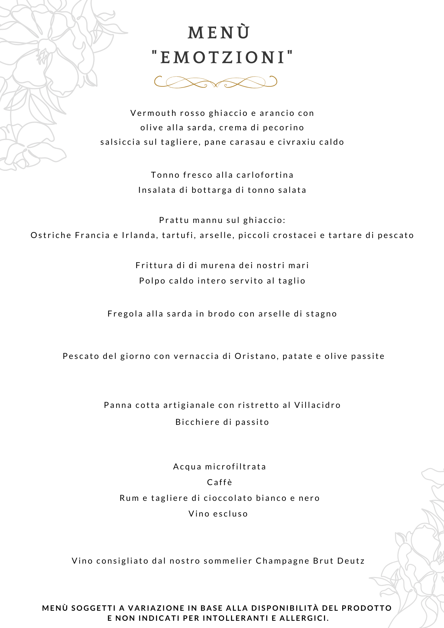 Gentile cliente e amico, abbiamo creato due menù per poterti far vivere un’emozione nel nostro ristorante, sono piatti semplici ma genuini, ideati per chi volesse fare un regalo inusuale, una cena o un pranzo in ristorante per promuovere una filiera che parte dal nostro pescivendolo, il nostro agricoltore, il nostro fornaio….a finire con la nostra famiglia fatta di grandi collaboratori che sempre ci mettono grande impegno per coccolarvi il più possibile, diamo lavoro a chi ci ha sempre aiutato ad essere dopo tanti anni un ristorante conosciuto in tutto il mondo per la sua semplice cucina.